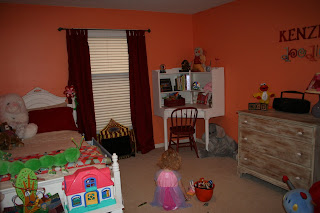 And, for Kenzie's birthday, she's getting a RED stereo and a bookcase in the shape of a house to replace the current temporary case. And, she'll be getting pretty white molding along the ceiling. And then, well, I give up. She DOES like it. So, that's all that matters.